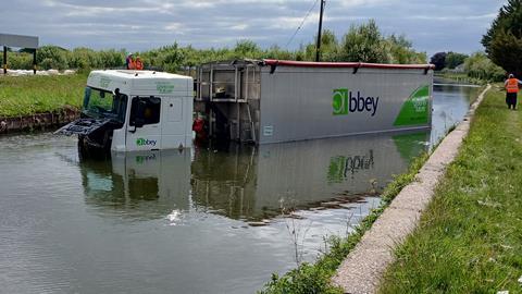 A Canal and River Trust (C&RT) spokesman said that the Trust and the Environment Agency (EA) worked together with the fire service and Abbey Logistics to recover the HGV tanker from the canal.