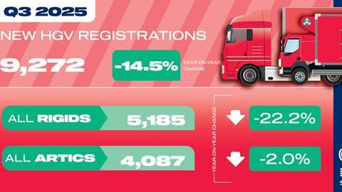 New heavy goods vehicle (HGV) registrations declined by 14.5% in the third quarter of 2025 with 9,272 new trucks entering service in the UK, whilst, conversely, demand for zero emission HGVs quadrupled, according to the latest data published by the Society of Motor Manufacturers and Traders (SMMT).